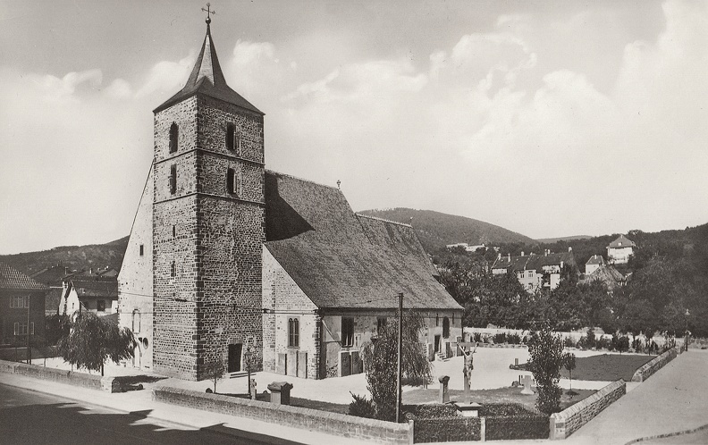 3 Fräuleins der katholischen Jungfrauenkongregation Handschuhsheim in Festtagsrobe mit Standarte vor dem alten katholischen Gemeindehaus in der Pfarrgasse. In der Mitte Elisabeth Selzer. Aufnahme um 1900.