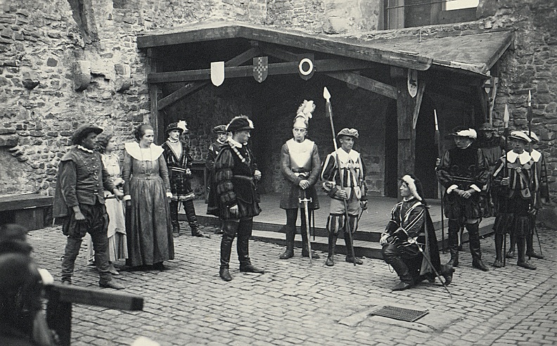 Friedrich Rottmann 1811. Links von der St.Vituskirche sieht man den Turm des Schlösschens. Rechts der Kirche das Türmchen der Lutherischen Gemeinde, Obere Kirchgasse 20. Pflügende Bauern unterwegs im heutigen "Musikerviertel".