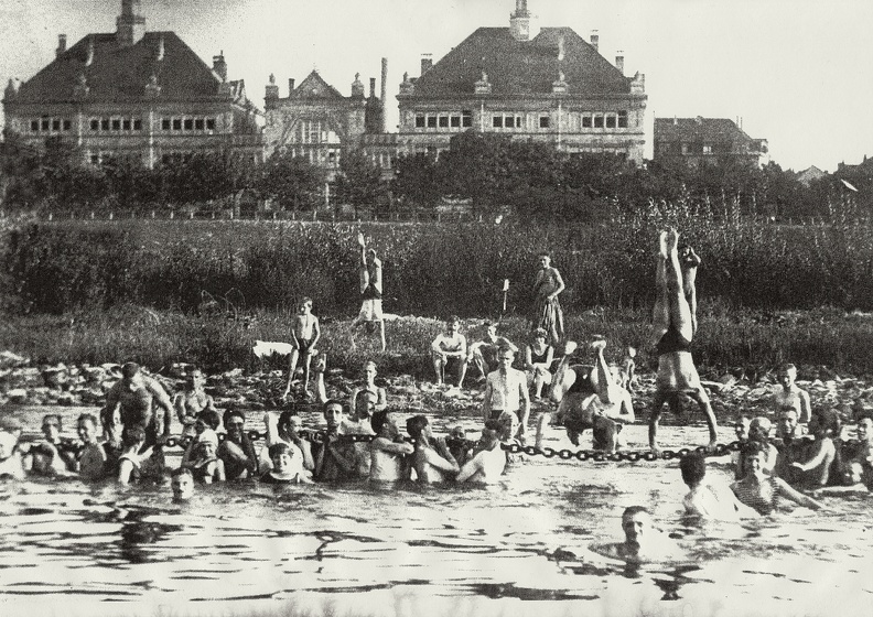 Blick vom Gaisberg zum Heiligenberg und zum Hohen Nistler über dem herbstlichen Morgennebel. Links sichtbar der Ausichtsturm beim Stephanskloster, rechts ein Detail der Thingstätte. Aufnahme 1990.