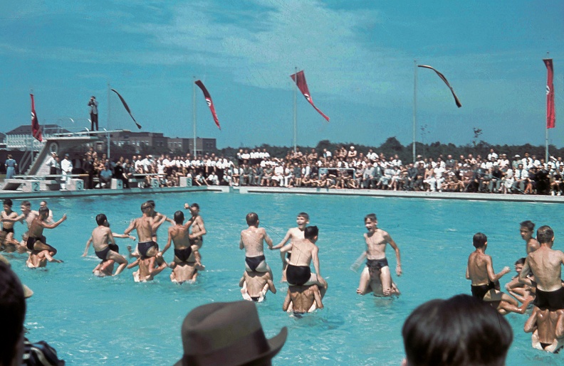 Die Bootz'sche Badeanstalt am Neckar östlich der Friedrichsbrücke, etwa 1930.