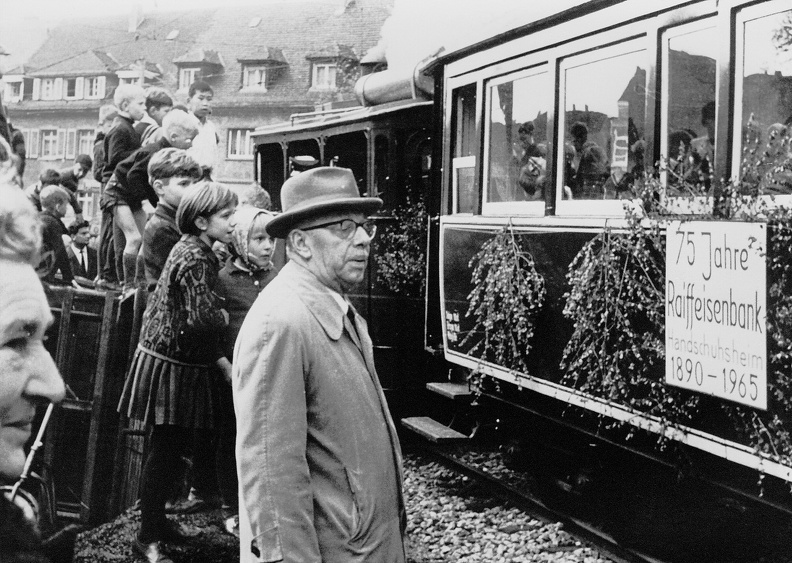 Letzte Fahrt des Feurigen Elias 1965 anlässlich 75 Jahre Raiffeisenbank Handschuhsheim