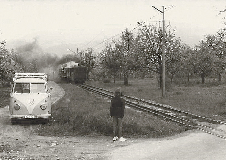 Ende der 50er Jahre. Der alte OEG-Bahnhof Handschuhsheim an der Dossenheimer Landstraße.
