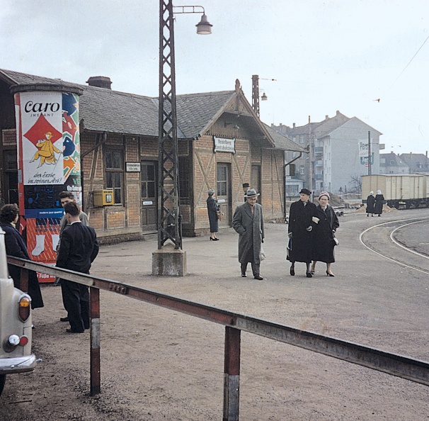OEG Nostalgiezug mit "Feurigem Elias" fährt unter Dampf durch Heidelberg 1965 zum Jubiläum 75 Jahre Raifeisenbank Heidelberg. Großer Andrang am OEG-Bahnhof Handschuhsheim.