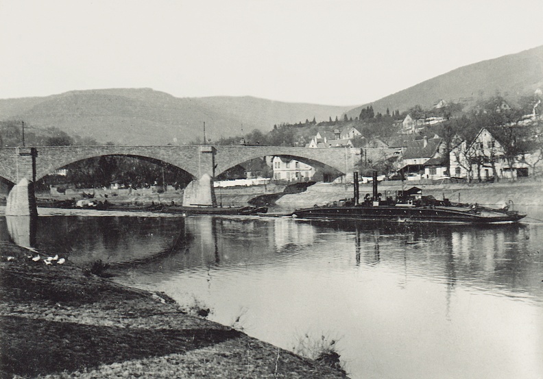 Kettenschlepper Nr.4 am Lauer, im Hintergrund Friedrichsbrücke ca.1930 Tableau, Flur