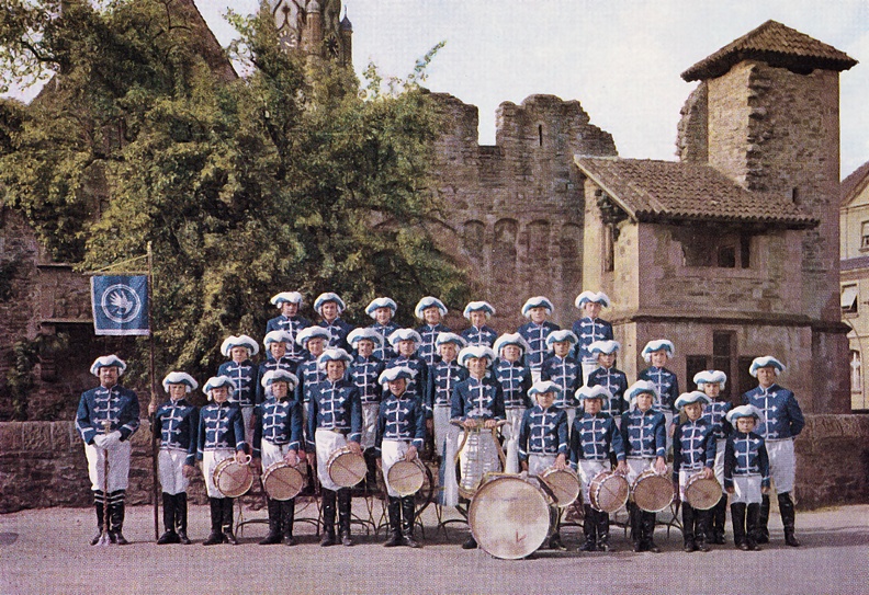 Das Quintett "Die Hendsemer Löwe" von 1946 - 1952. Aufnahme vom Kerwe-Montag 21.06.1948 im Garten des Anwesens Dossenheimer Landstraße 41. Von Links: Pianist Albert Kienzle, 22.5.1928 - 9.6.1997, Gitarrist Walter Heiß, 12.2.1928 - 3.3.2000, Willi Lauterbach, Tenor II, 22.7.1927, Willi Merkel, Baß II, 20.7.1928, Paul Schick, Tenor I, 13.5.1928 - 12.8.2011, Wilhelm Barth, Baß I, 19.8.1929, Erich Neureither, Tenor II, 20.6.1927 - 11.8.2009.