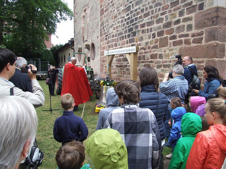 6.2.2015, Glockengießerei Bachert, Karlsruhe. Viele Handschuhsheimer verfolgen den Guss der neuen "Franziskus-Glocke" zur Vervollständigung des Geläutes der St.Vituskirche. Die Glockenzier gestaltete Christoph Feuerstein aus Neckarsteinach.
