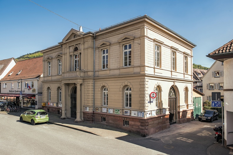 Blick zur Unteren Kirchgasse und zur Steubenstraße etwa 1929, noch mit der Engstelle bei der ehemaligen Schmiede Schober.