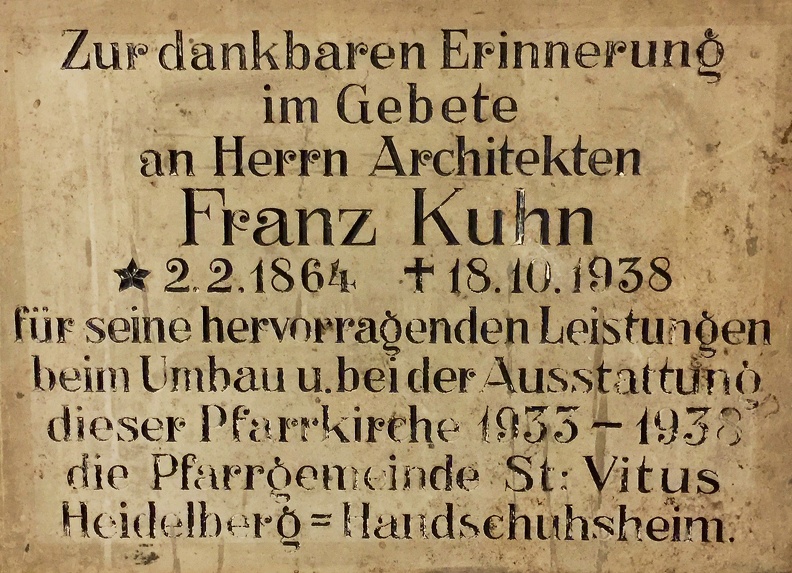 Der Wappenstein des alten Chores an der Nordwand der St.Vituskirche zeigt das Einweihungsjahr des Kirchengebäudes im Jahr 1483