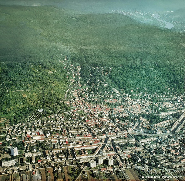 Luftbild des Ortszentrums von Handschuhsheim 2018. Blick Richtung Süd-West
