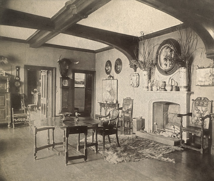Blick aus dem Park zum Gärtnerhaus und St.Vituskirche. Bleistiftzeichnung von Jakob Pollich 1888.