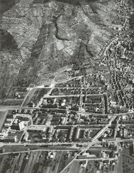 Luftbild von Ortsmitte Handschuhsheim etwa 1995. Ansicht von West.