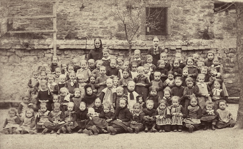 Erste Fotografien aus der von Louisa Graham ins Leben gerufene "Kinderschul" etwa 1865 in Handschuhsheim. Obere Kirchgasse, gegenüber der ehemaligen Lutherischen Kirche. Hier über 80 Kinder mit 2 Betreuerinnen!