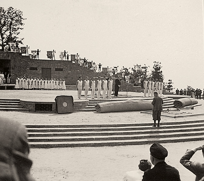 Ausscheidungswettkämpfe der deutschen Turner zu den Olympischen Spielen 1936 in der Thingstätte auf dem Heiligenberg.