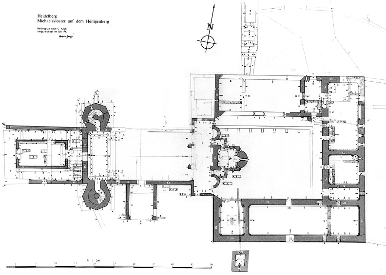 Luftbild des Klosters 1986 nach Beendigung der archäologischen Arbeiten. Tiefburgarchiv, Nachlass Stefan Kresin
