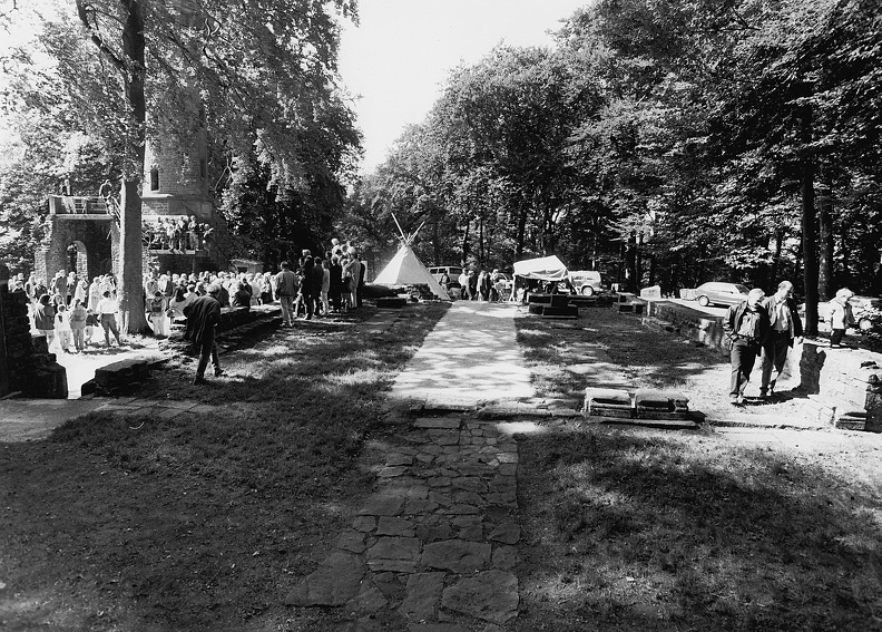 Eröffnung des neuen Lehrpfades "Keltenweg Heiligenberg" u.a. mit Dr. Berndmark Heukemess und OB Beate Weber am 08.09.1996 bei den Ruinen des St.Stephansklosters.